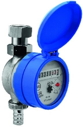 Zapfhahnzähler zur Montage für Schlauchanschluss als Einstrahlzähler 80 mm. Eichjahr: aktuell
